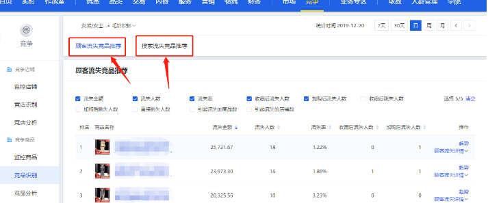 还有种找到竞品的方式就是从竞店来找,在竞店分析中,同样会有两种类型的竞店:流失竞店以及高潜竞店,我们可以在这两类店铺中找到与我们产品相对应的竞品。