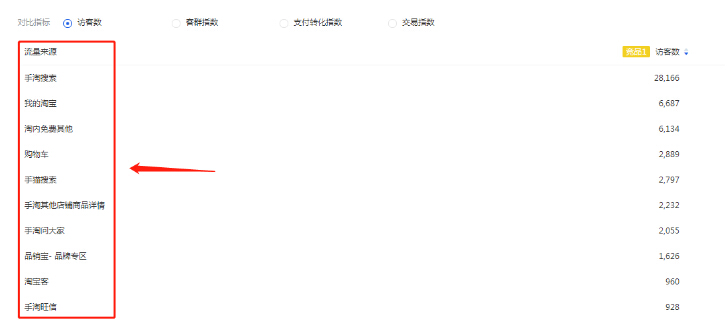 在竞品的流量来源中,我们可以看到竞品的主要流量来源是从哪个渠道进来的,主要是做付费的还是免费的,是做首页流量、搜索流量还是直通车流量等。